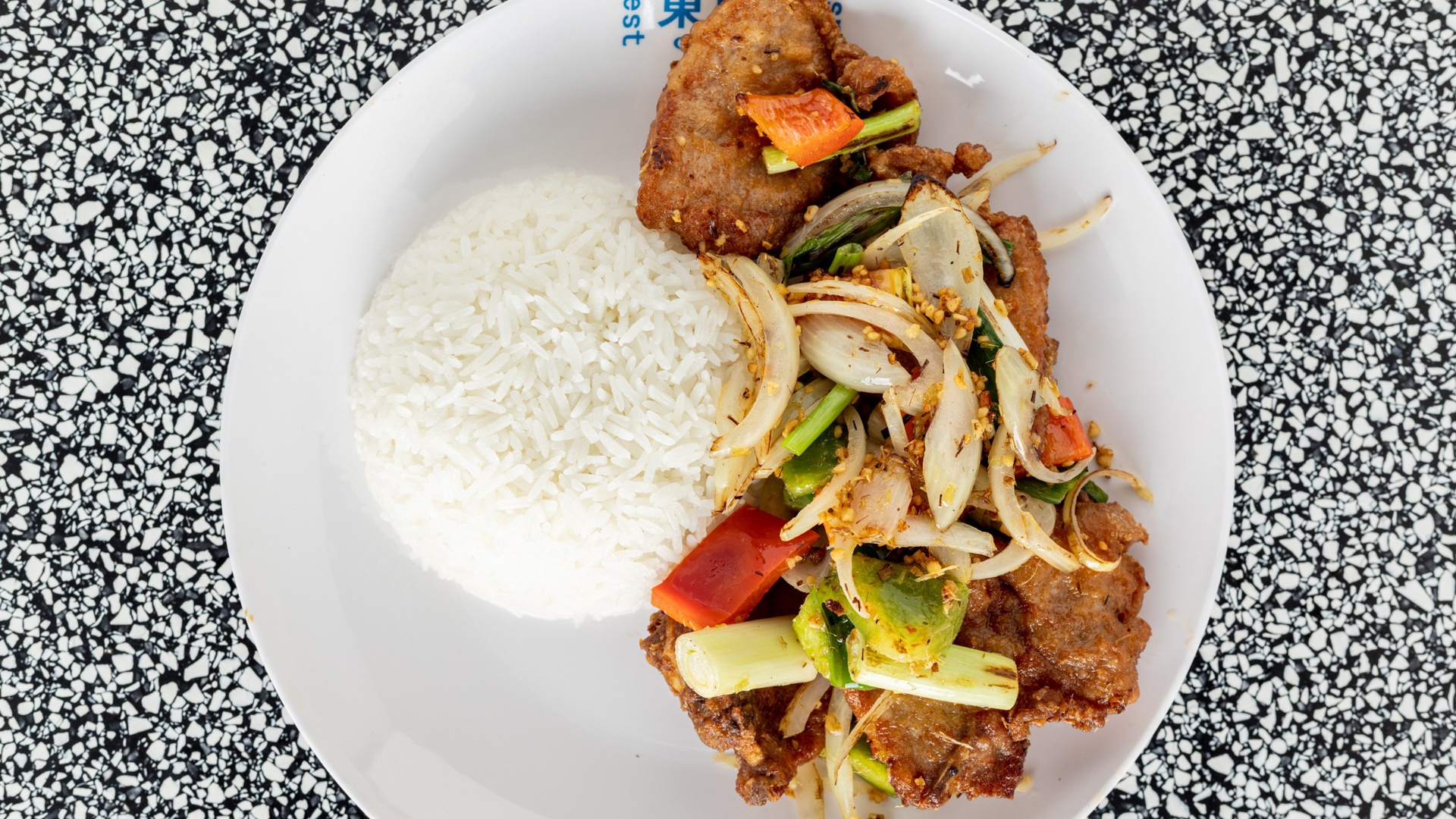 Crispy Chicken with Rice or Noodle (+$1.50)
